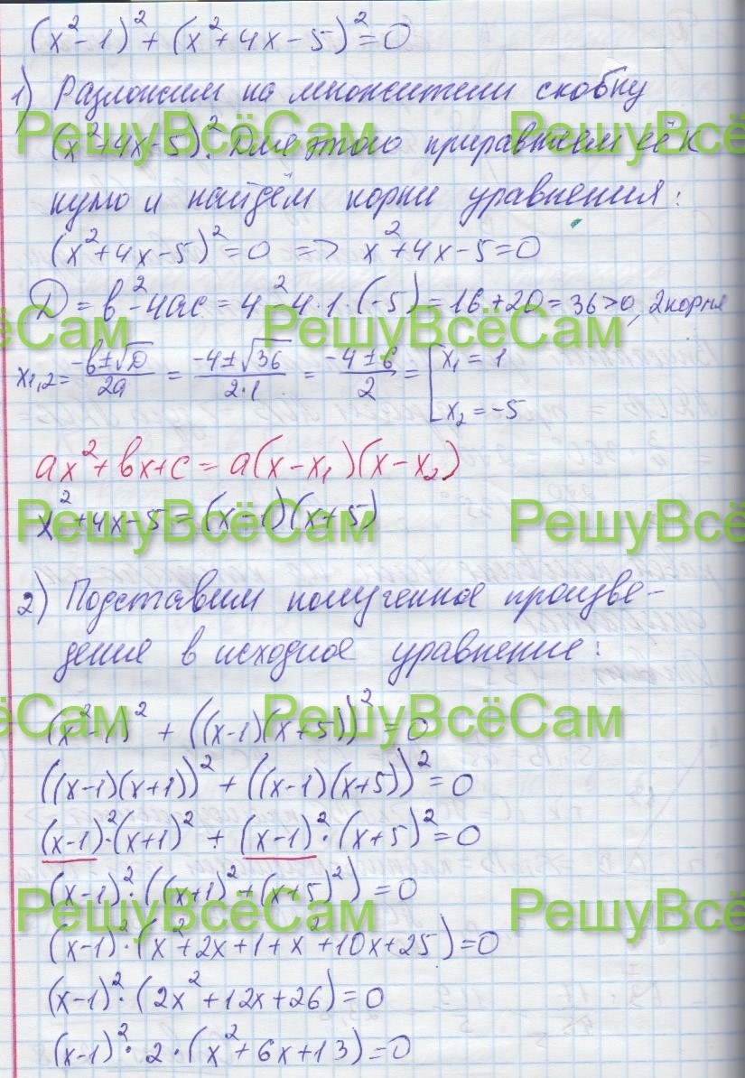 20. Решите уравнение (x2 – 1)2 + (x2 + 4x – 5)2 = 0.