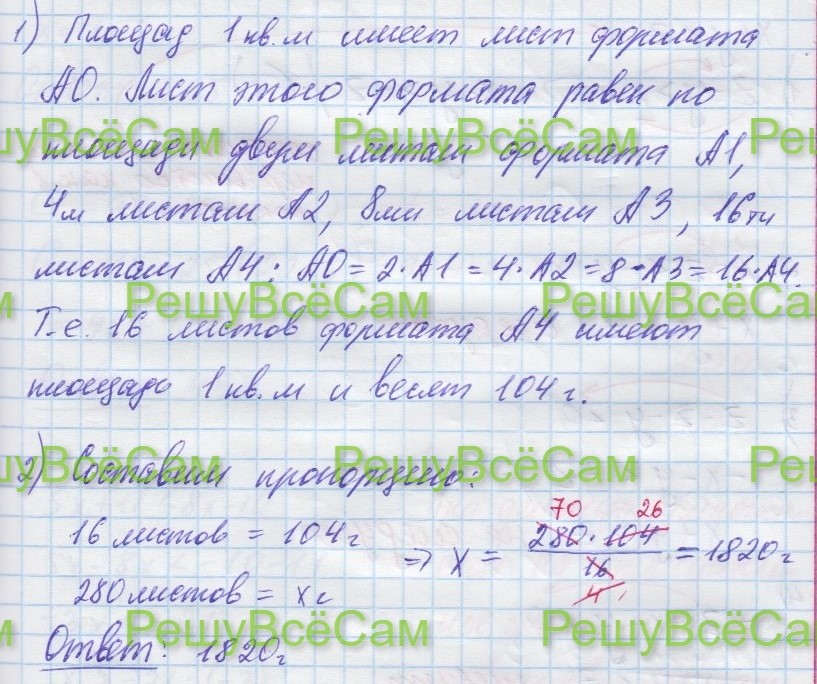 5. Бумагу формата А4 упаковали в пачки по 280 листов. Найдите массу пачки, если масса бумаги площадью 1 кв.м равна 104 г. Ответ дайте в граммах.