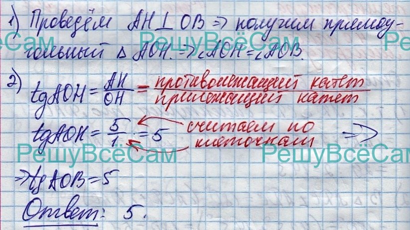 18. Найдите тангенс угла АОВ, изображенного на рисунке 12.