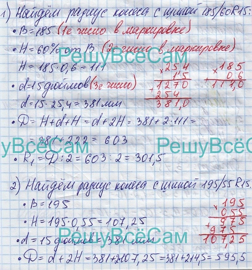 2. На сколько миллиметров радиус колеса с шиной 185/60 R15 больше, чем радиус колеса с шиной 195/55 R15?