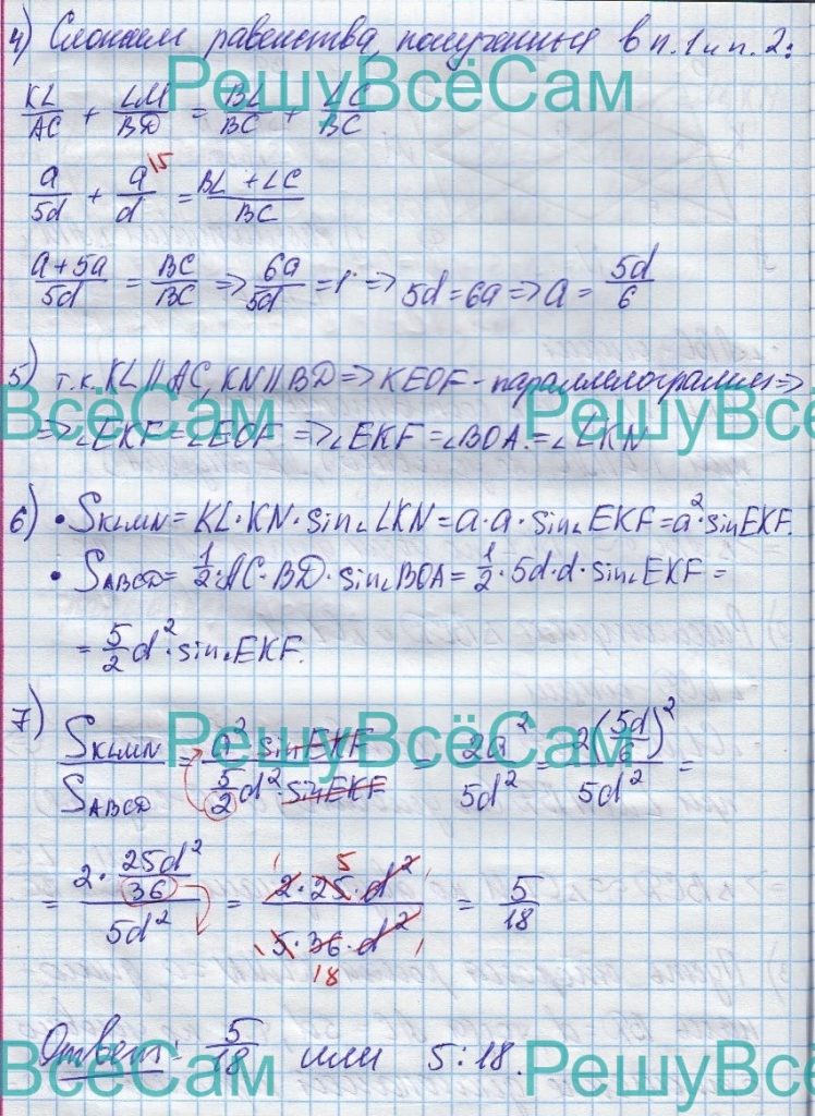 25. Вершины ромбы расположены на сторонах параллелограмма, а стороны ромба параллельны диагоналям параллелограмма. Найдите отношение площадей ромба и параллелограмма, если отношение диагоналей параллелограмма равно 5.