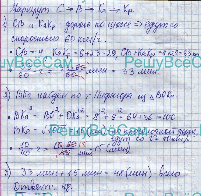 По шоссе Саша с дедушкой едут со скоростью 60км/ч, а по проселочным дорогам — со скоростью 40 км/ч. Расстояние от  Синицыно до Разлива равно 7 км, от Ольховки до Разлива — 5 км, от Разлива до Веселовки- 3 км, от Ольховки до Прохоровки- 12 км, от Ольховки до Кашино — 6км, а от Кашино до Крюковки- 29 км.
