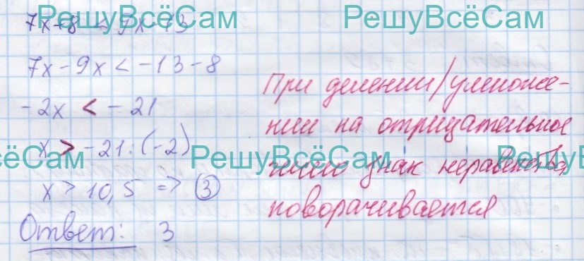 13. При каких значениях x значение выражения 7x + 8 меньше значения 9x – 13?