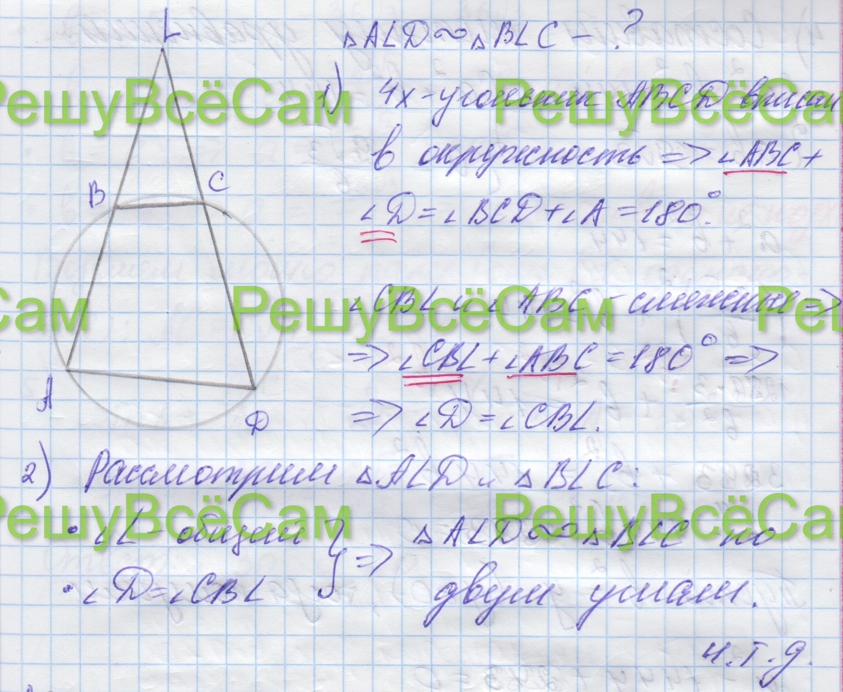 24. Известно, что около четырехугольника ABCD можно описать окружность и что продолжения сторон AB и CD пересекаются в точке L. Докажите, что треугольники ALD и BLC подобны.