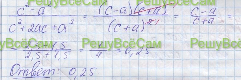 8.Надите значение выражения (c2 – a2)/(c2 + 2ac + a2) при a = 1,5, c = 2,5.