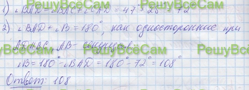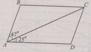 15. Диагональ AC параллелограмма ABCD образует с его сторонами углы, равные 47 градусов и 25 градусов (см.рис.32). Найдите больший угол параллелограмма. Ответ дайте в градусах.