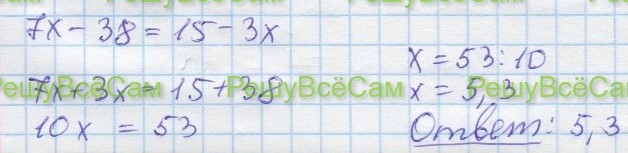 9. Решите уравнение 7x – 38 = 15 – 3x.
