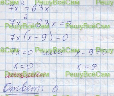9. Решите уравнение 7x2 = 63x. Если уравнение имеет более одного корня, в ответ запишите меньший из корней.
