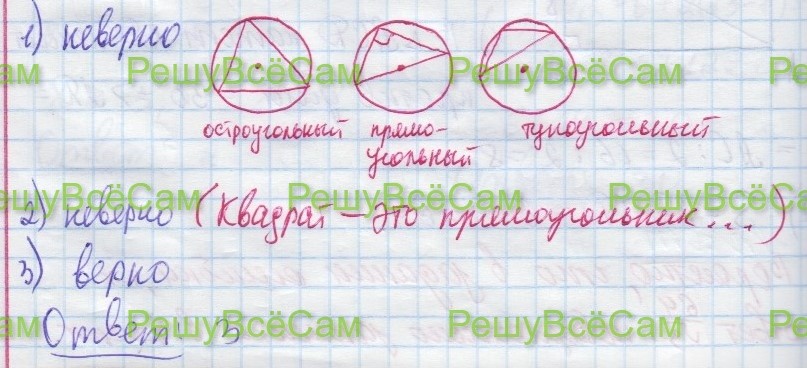 1) Центры описанной около треугольника окружности лежит внутри этого треугольника.