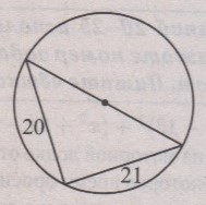 16. Прямоугольный треугольник с катетами 20 см и 21 см вписан в окружность (см.рис.50). Чему равен радиус этой окружности? Ответ дайте в сантиметрах.