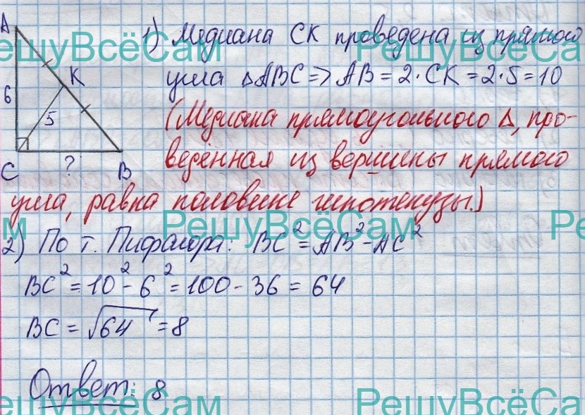 23. В прямоугольном треугольнике ABC с прямым углом C катет AC = 6, медиана CK равна 5. Найдите катет BC.