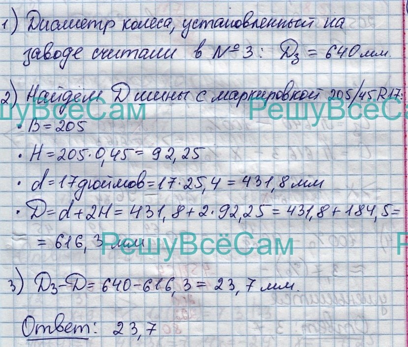 4. На сколько миллиметров уменьшится диаметр D колеса, если заменить шины, установленные на заводе, шинами с маркировкой 205/45 R17?