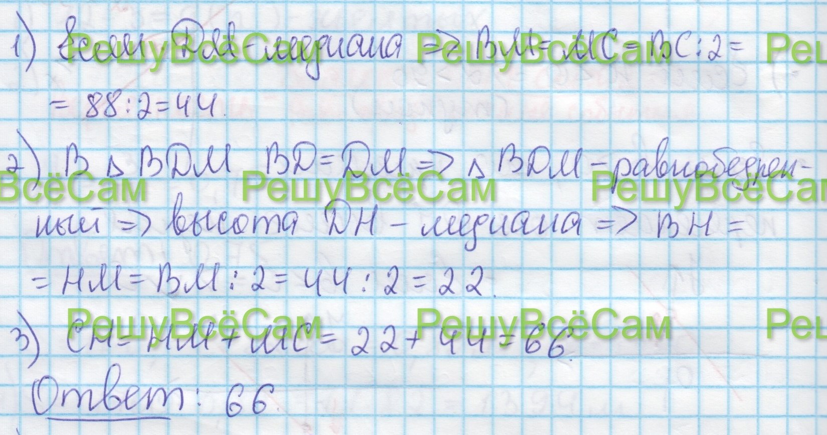 15. В треугольнике BCD проведены медиана DM и высота DH (см.рис.71). Известно, что BC = 88 и BD = DM. Найдите CH.