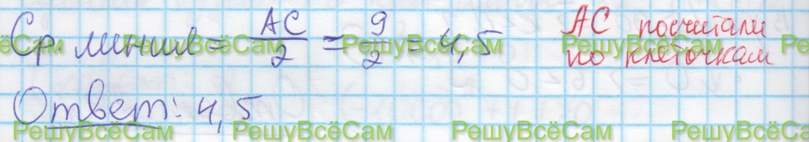 18. На клетчатой бумаге с размером клетки 1*1 изображен треугольник АВС (см.рис.74). Найдите длину его средней линии, параллельной стороне АС.
