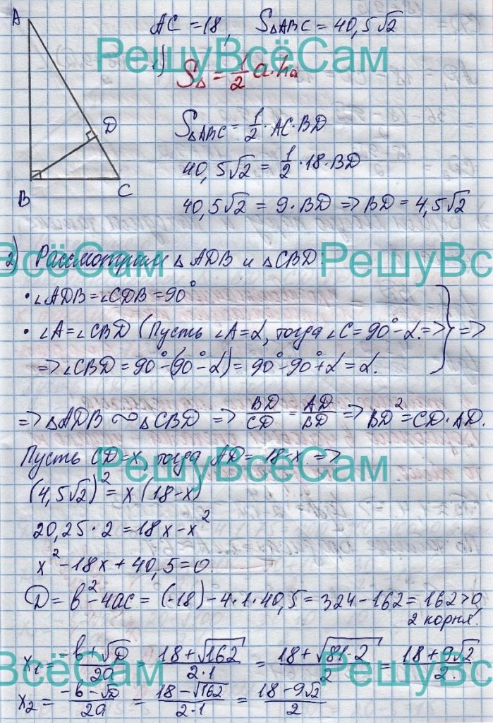 25. Найдите острые углы прямоугольного треугольника, если его гипотенуза равна 18, а площадь равна 40,5*корень2.