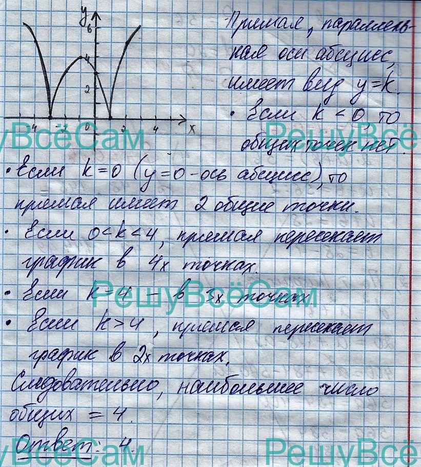 22. Постройте график функции y = |x^2 + 2x — 3|. Какое наибольшее число общих точек график данной функции может иметь с прямой, параллельной оси абсцисс?