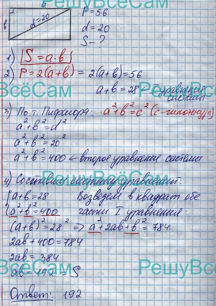 23. Периметр прямоугольника равен 46, а диагональ равна 17. Найдите площадь этого прямоугольника.