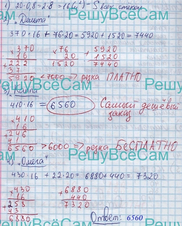 5. Для остекления кафе «Ужин» требуется заказать 20 одинаковых стекол в одной из трех фирм. Площадь каждого стекло — 0,8 м^2. В таблице приведены цены на стекло и на резку стекла. Сколько рублей будет стоить самый дешевый заказ?